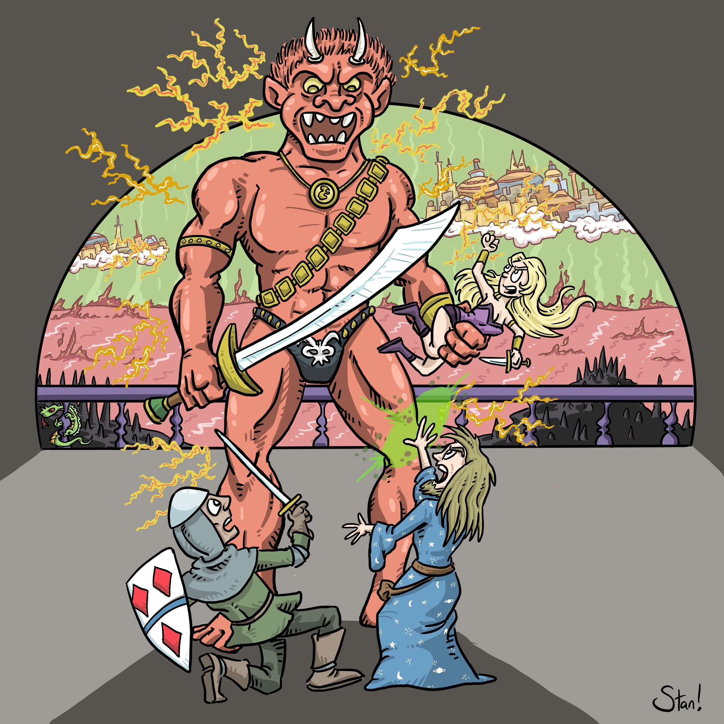 One reason I made that decision is that for as iconic and memorable as Dave Sutherland’s painting of adventurers taking on an efreet is, I’ve rarely seen other artists do homages to it … and I’d certainly never done one myself.