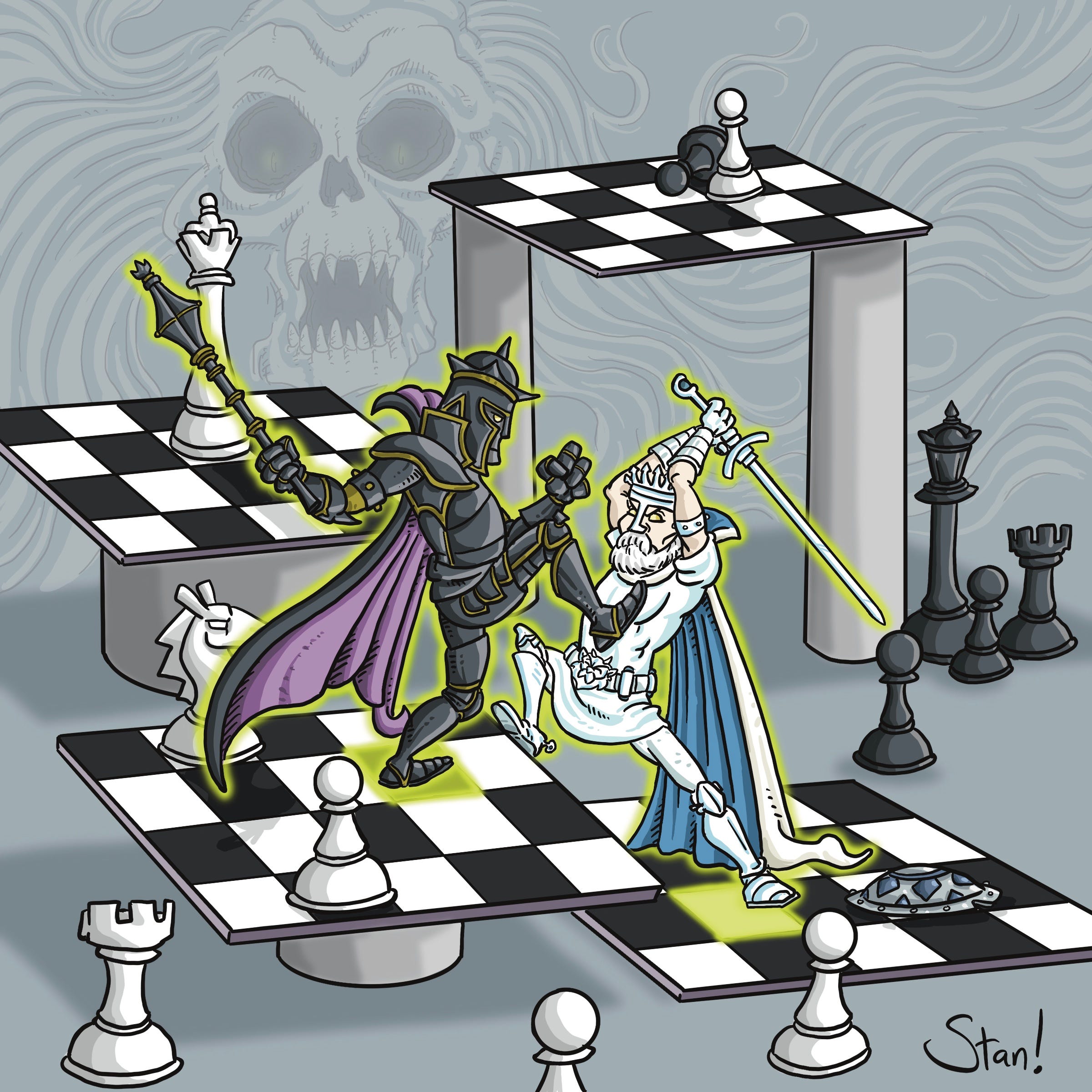 I had a GREAT time creating my cartoon homage to this classic piece of gaming art. Maybe over time I’ll take a turn at the rest of Beauvais’s chess covers, too.