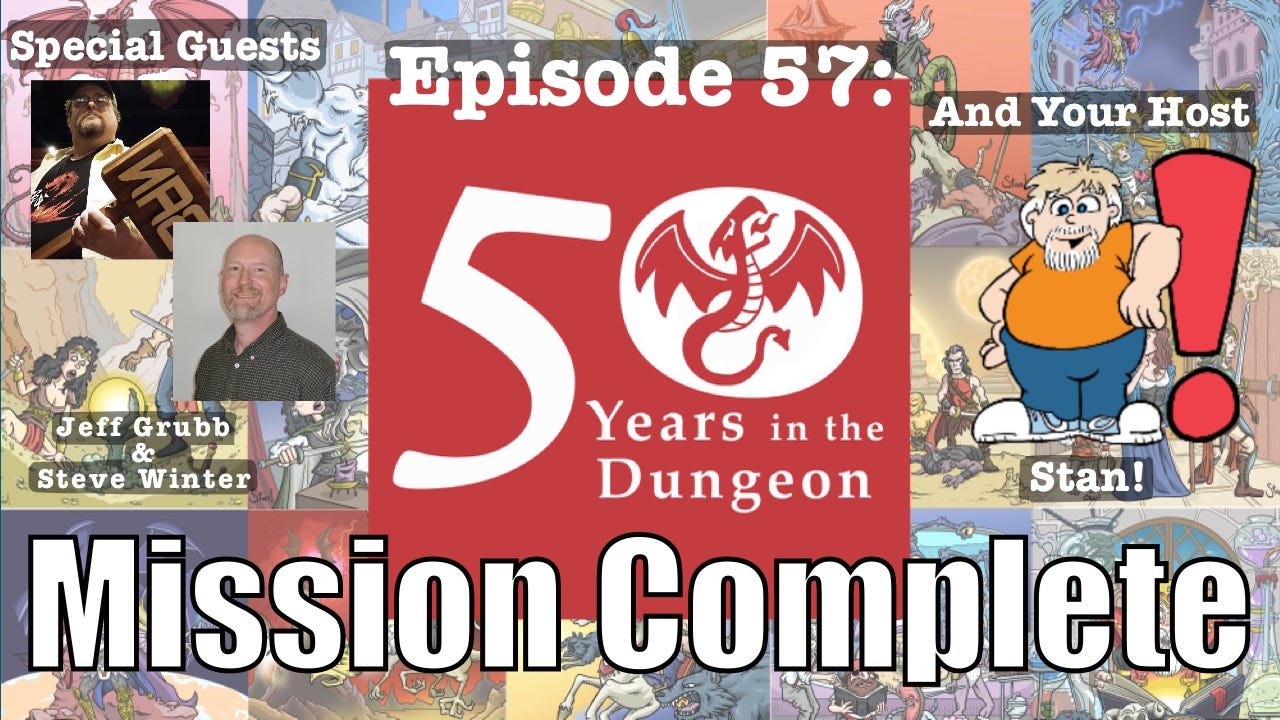 To mark this achievement, I decided to do a kind of “after action debrief” with the same guests who had joined me for Episode 1—D&D luminaries Jeff Grubb and Steve Winter. On that first show, we brainstormed what the series might be like and set the ground rules for what was to come. In Episode 57, we looked back at those goals discussed how they played out in reality, and what has been accomplished in the interim.